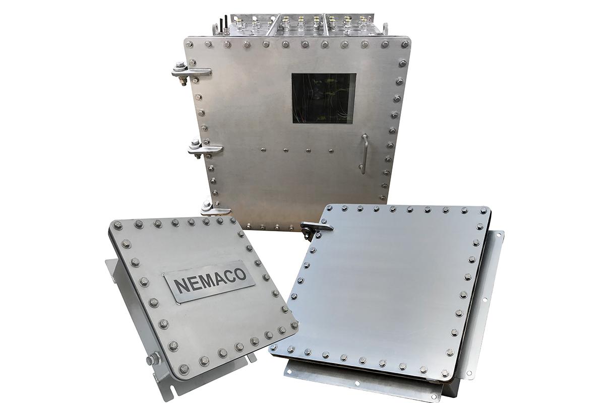 Nemaco offers standard, modified or complete customized fabrication of electrical enclosures for all of your industrial and system automation control needs. We offer a wide variety of NEMA electrical enclosures made from metal (stainless steel, carbon steel, aluminum) and FRP (plastic reinforced plastic) materials.